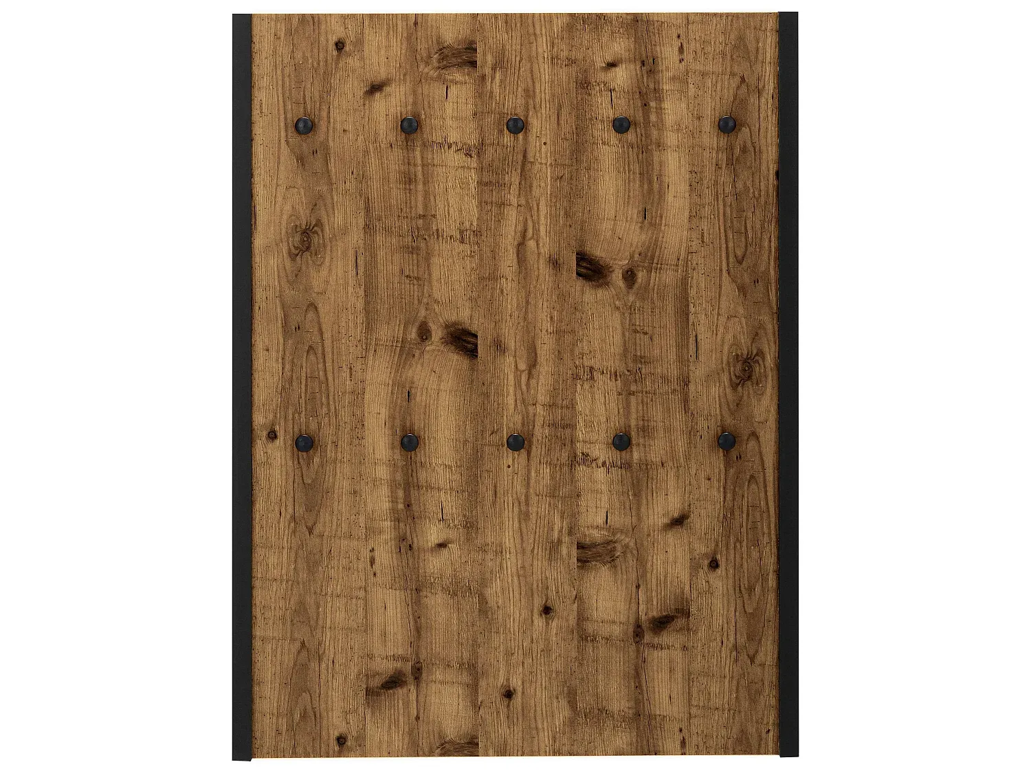 Ein Board aus laminierter Spanplatte. Es passt zu Innenräumen im Industrie- und Landhausstil. Die Farbkombination bringt ein natürliches Element in die Umgebung. Der Haken eignet sich zum Aufhängen von Kleidung, Hüten und Handtüchern. Geeignet für den Einsatz im Flur oder Schlafzimmer.