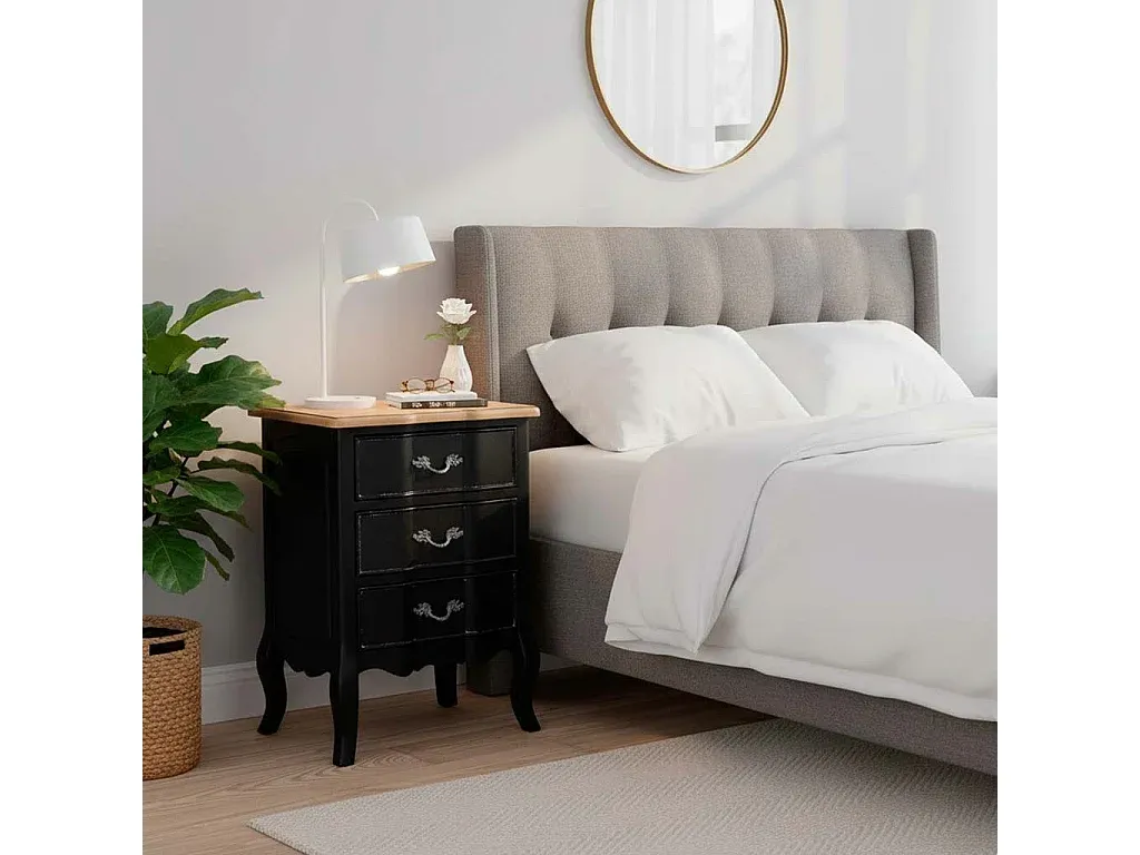 Dieser Beistelltisch aus Holz mit 3 Schubladen (50 x 40 x 70 cm) fügt sich harmonisch in jeden Raum ein. Die drei Schubladen bieten Stauraum, um Gegenstände diskret aufzubewahren. Das Design ist schlicht und funktional und passt zu verschiedenen Einrichtungsstilen. Geeignet für Wohnzimmer, Schlafzimmer oder Flur.