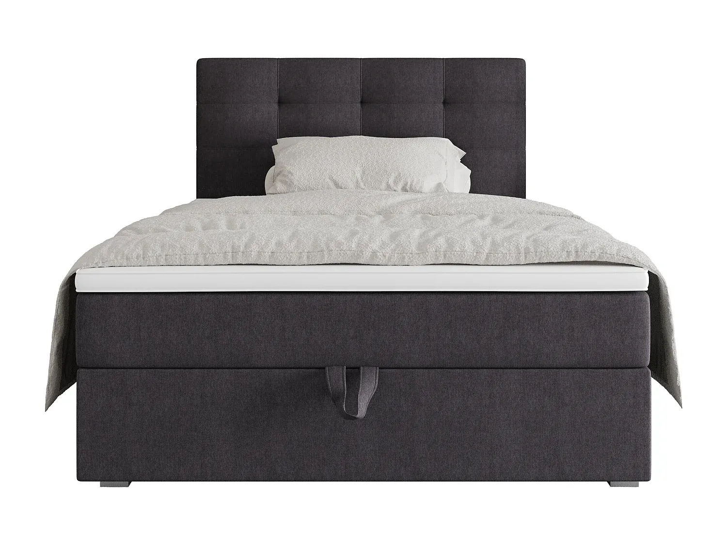 Ein Boxspringbett mit einem integrierten Stauraum, der das Verstauen von Bettwäsche erleichtert. Die Matratze kombiniert Bonellfedern mit T-30-Schaumstoff für gleichmäßige Gewichtsverteilung. Ein praktischer Mechanismus unterstützt das Öffnen des Stauraums. Der Stoff hat ein interessantes Muster, bleibt jedoch glatt und angenehm im Griff. Verschiedene Größen stehen zur Auswahl, passend für individuelle Bedürfnisse.