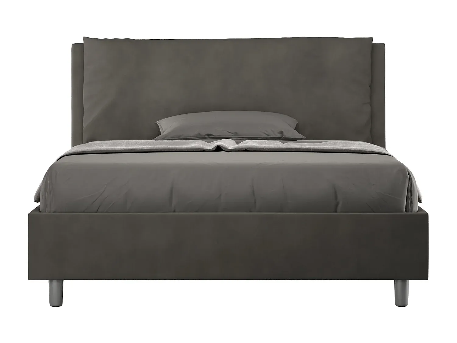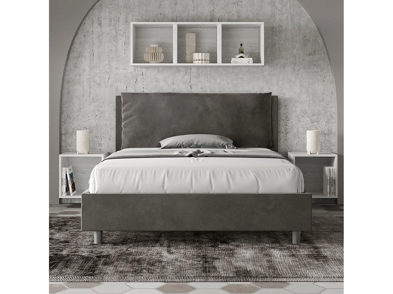 Bett mit gepolstertem Kopfteil und Rahmen in Mikrofaser, passend für eine 140x190 cm Matratze. Der Lattenrost ist enthalten, die Matratze jedoch nicht. Die Struktur besteht aus Holzplatten und Holzderivaten. Maße der Bettstruktur: Breite 155 cm, Tiefe 202 cm, Höhe 110 cm. Farbe in Grau. Geeignet für zwei Personen und kommt ohne Matratze. Das Produkt ist zum Selbstaufbau bestimmt.