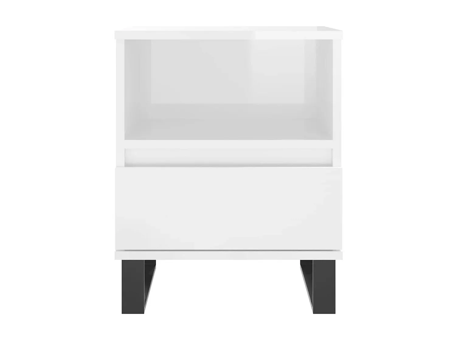 Dieser Nachttisch bietet praktischen Stauraum mit einer Schublade und einem Fach, ideal für Zeitschriften, Bücher und Fernbedienungen. Hergestellt aus Holzwerkstoff, bietet er eine glatte Oberfläche und lässt sich leicht mit einem feuchten Tuch reinigen. Die stabilen Metallbeine sorgen für Standfestigkeit. Die obere Ablagefläche eignet sich für Dekorationsgegenstände. Achten Sie darauf, das Produkt mit einer Wandhalterung zu sichern. Maße: 40 x 35 x 50 cm.