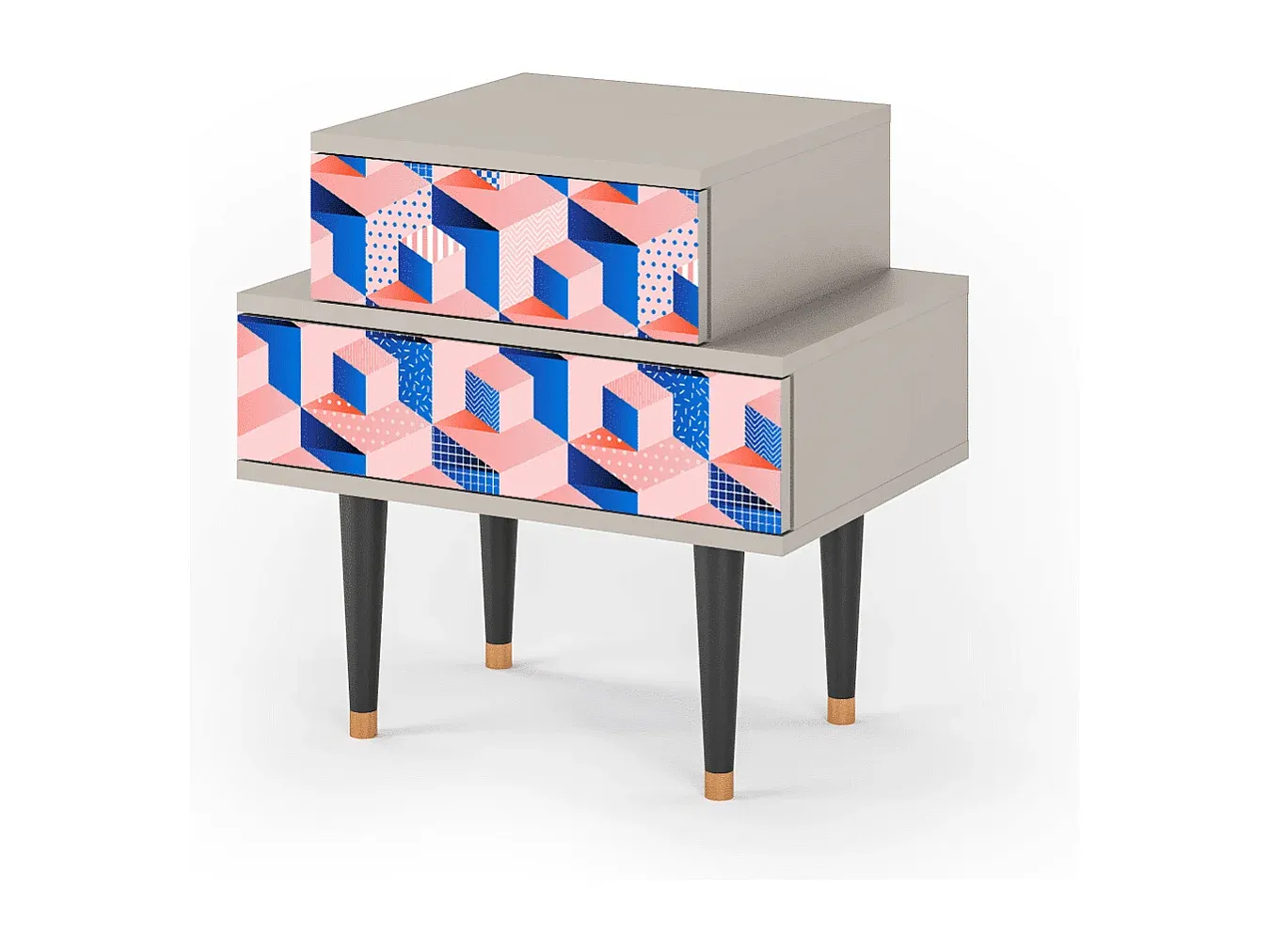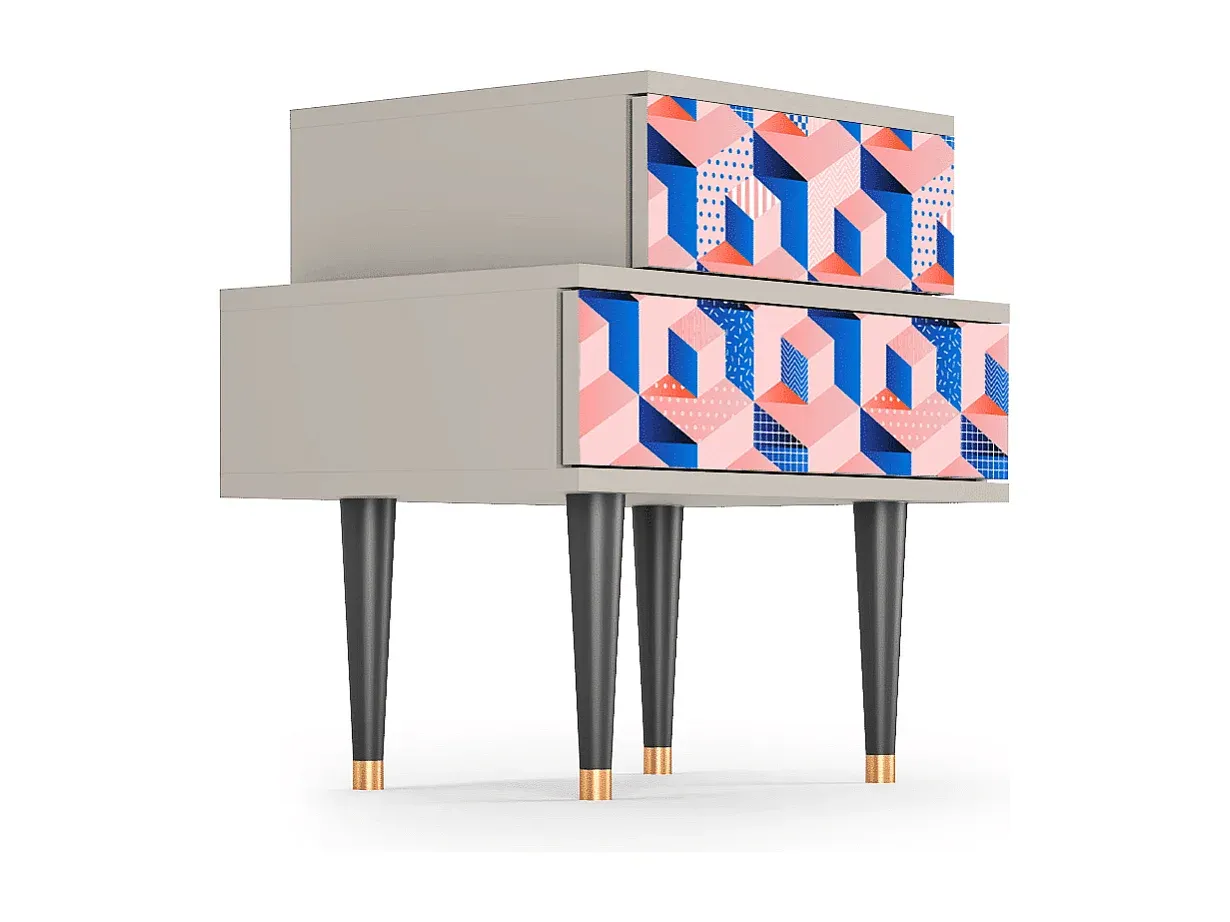Das NS1-Möbelstück zeichnet sich durch seine vielseitige Funktionalität aus. Es bietet Platz für verschiedene Gegenstände und passt sich unterschiedlichen Einrichtungsstilen an. Jede Oberfläche ist präzise gefertigt und mit einem UV-Druck versehen. Die Schutzlackierung erhöht die Haltbarkeit und Widerstandsfähigkeit. Es steht auf stabilen Holzbeinen mit Metallelementen und fügt sich harmonisch in den Raum ein. Erhältlich in mehreren Farben und Designs, bietet es Flexibilität in der Auswahl.
